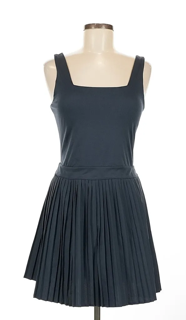 This black pleated dress is perfect for any occasion. Its sleek design offers a timeless look. Sports athletic summer or everyday outfit. Built in shorts. Super comfortable. Pockets in shorts NWT size S
