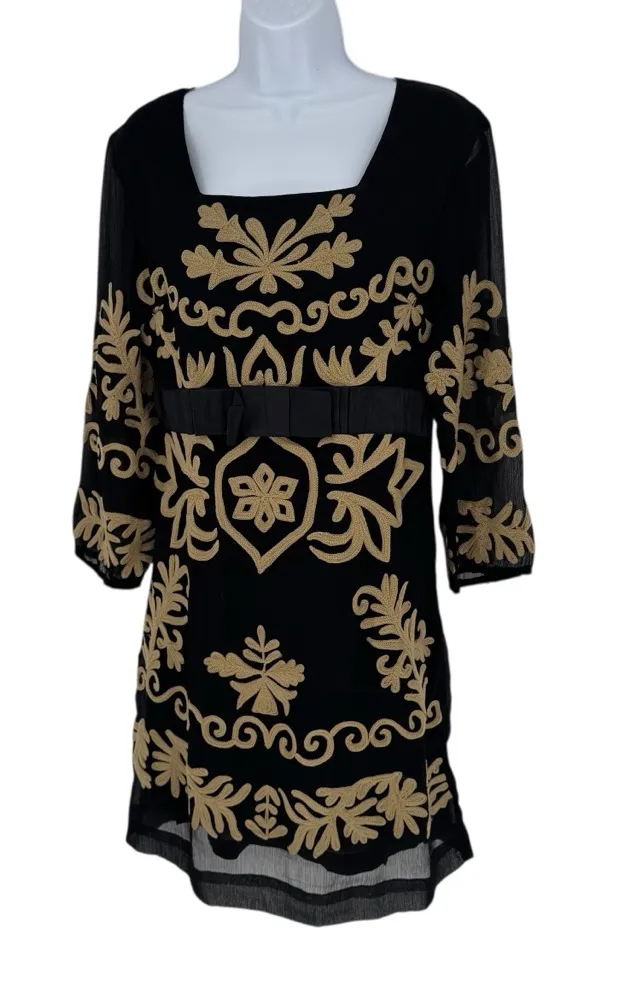 NWT Almatrichi Black Tan Twine Bow Lined Square Neck Midi Dress EU 38 Size 6-8 - $42 New With Tags - From Megan