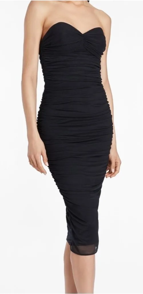 Midi Dress Strapless Fitted Sweetheart Neckline Shirring Detail Along Sideseams and Bust Invisible Z... Show more