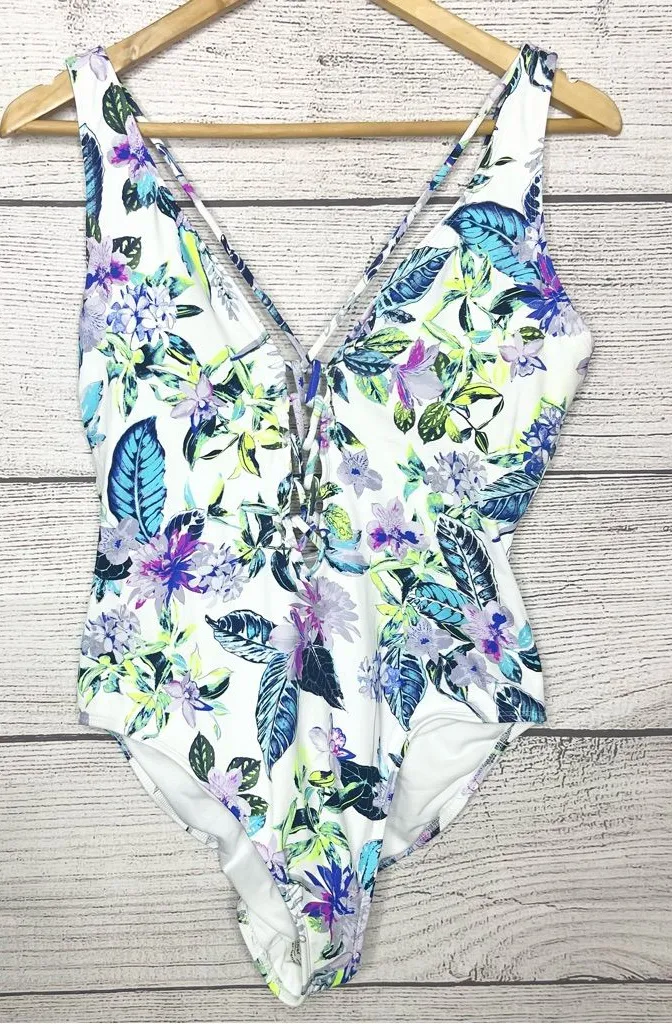 Ambrielle Floral One-Piece Swimsuit Women’s Size Large New with gusset sticker in place White... Show more
