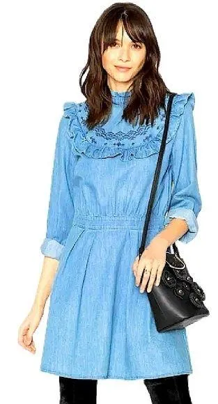 This & OTHER STORIES Blue Frill Denim Long Sleeve Turtleneck Dress is brand new with tags attached a... Show more