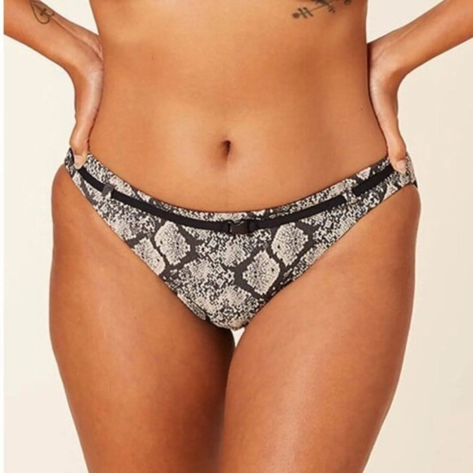 Andie Swim Riviera Snakeskin Bikini Bottom with belted waist detail and cheeky coverage. Size: Small Snakeskin textured fabric in neutral tones Medium/high rise with high-leg cut Cheeky bottom coverage Belted waist with buckle detail Condition: New with Tags Textured snakeskin bikini bottom with cheeky fit, belted waist, and high-leg rise. Keywords: andie swim bikini bottom, riviera belted bikini, snakeskin cheeky swim bottom, women’s small snakeskin bikini, high rise high leg bikini, trendy textured swimsuit bottom, belted swimwear retro style, boho chic swimwear, summer beach pool bikini, vacation resort swim bottom, cheeky belt buckle bikini, grunge punk inspired swim