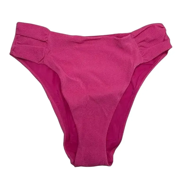 Andie Swim The Ruched Textured Side High Waisted Bikini High Leg Cut Cheeky Bottoms M Pink Orchid Pi... Show more