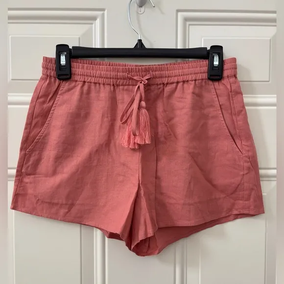 New with tags / Made in China 55% linen 45% rayon / Hand wash STYLE# AAB119 RN# 165598 COLOR: SUNSENT SKU# AAB119-SNST PO# ASU22SPO3-US The NWT Andie The Short Women's XS Elastic Waistband Pockets Linen Blend Coral is a stylish and comfortable pair of cover-up shorts perfect for casual occasions like travel or beach outings. Made from a blend of rayon and linen, these shorts feature a drawstring closure, tasseled accents, and an elastic waistband for a customized fit. The coral color and solid pattern add a pop of color to your summer wardrobe, while the slash pockets and mid-rise design offer both functionality and style. Ideal for lounging by the pool or enjoying a day at the beach, these shorts are a must-have for any bohemian-inspired outfit.