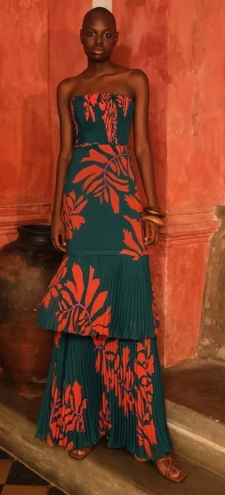 Andres Otalora Morocco Pleated Chiffon Maxi Dress Sz. 2 Retails $1350 NEW WITH TAGS! Measures: 15” armpit x armpit Slim fit, strapless, tiered skirt, maxi hem, lined Zip fastening Composition: Chiffon 100% Recycled Polyester Dry clean only Made in Colombia NWT, Andres Otalora, Morocco dress, pleated chiffon, maxi dress, designer gown, luxury fashion, evening wear, resort wear, statement dress, high end, feminine style, quiet luxury, size 2