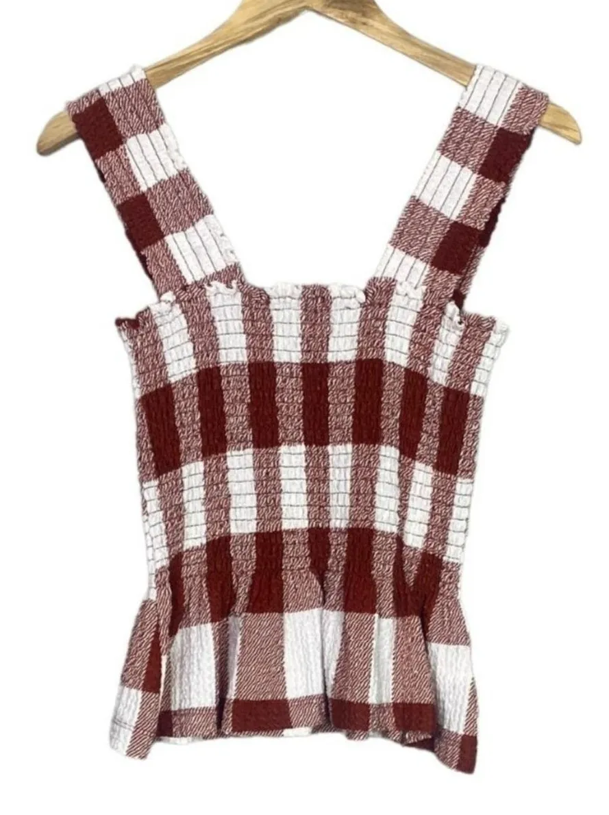NWT Ann Taylor Loft Smocked Checker Peplum Sleeveless Stretchy Tank XS Copper Red Burnt Orange White... Show more