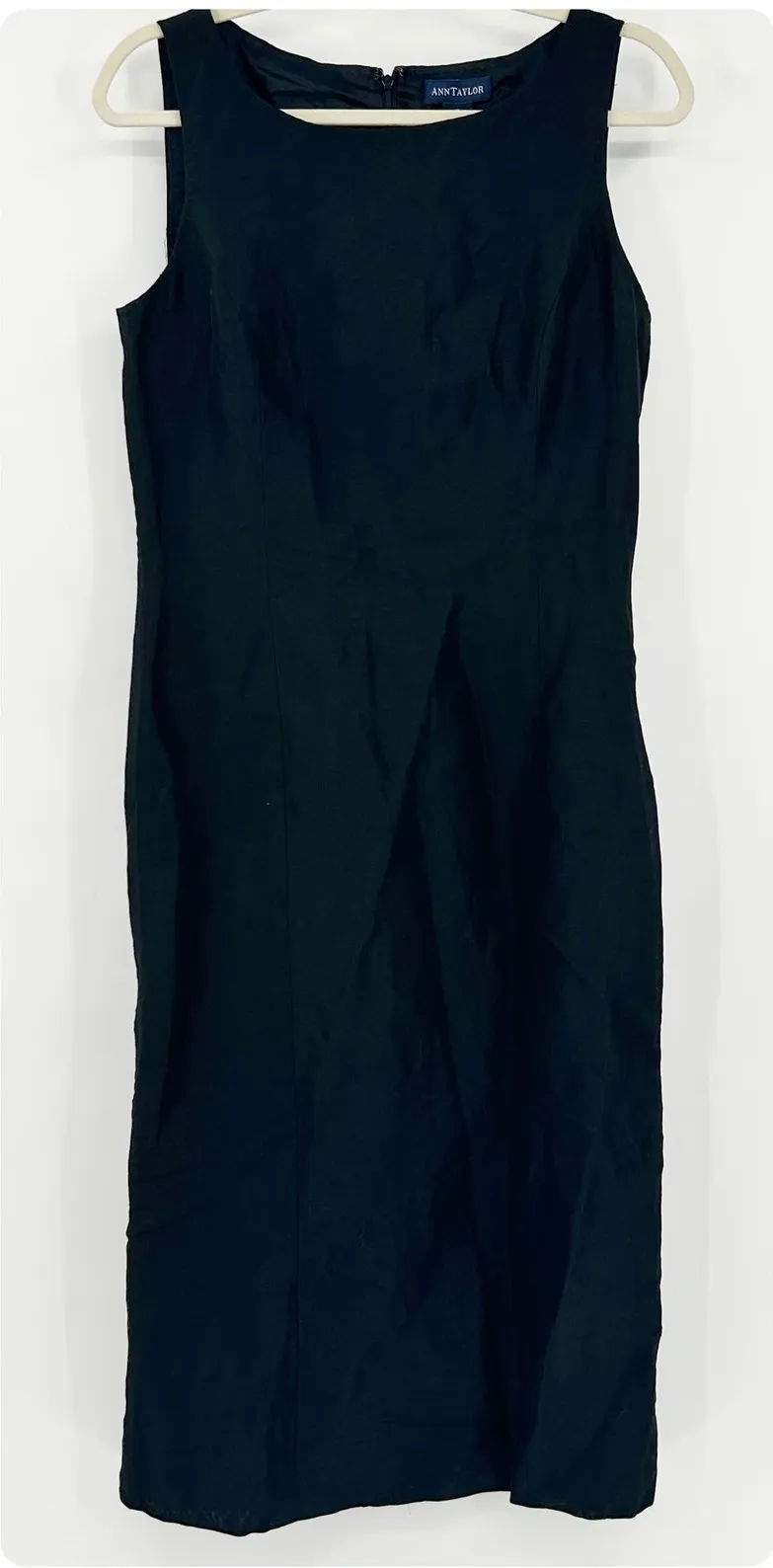 NWT Ann Taylor Womens Vintage Deadstock 90s Linen Blend Sheath Dress Size 10 in Black New with tags... Show more