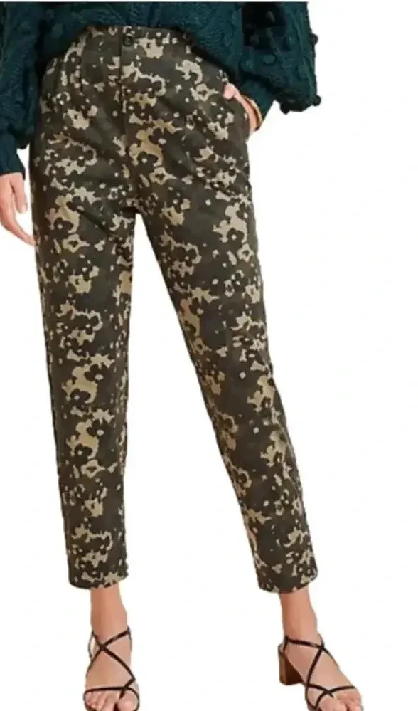 New Anthropologie Amadi pants 100% cotton faded camouflage print camo print with black flowers tha... Show more