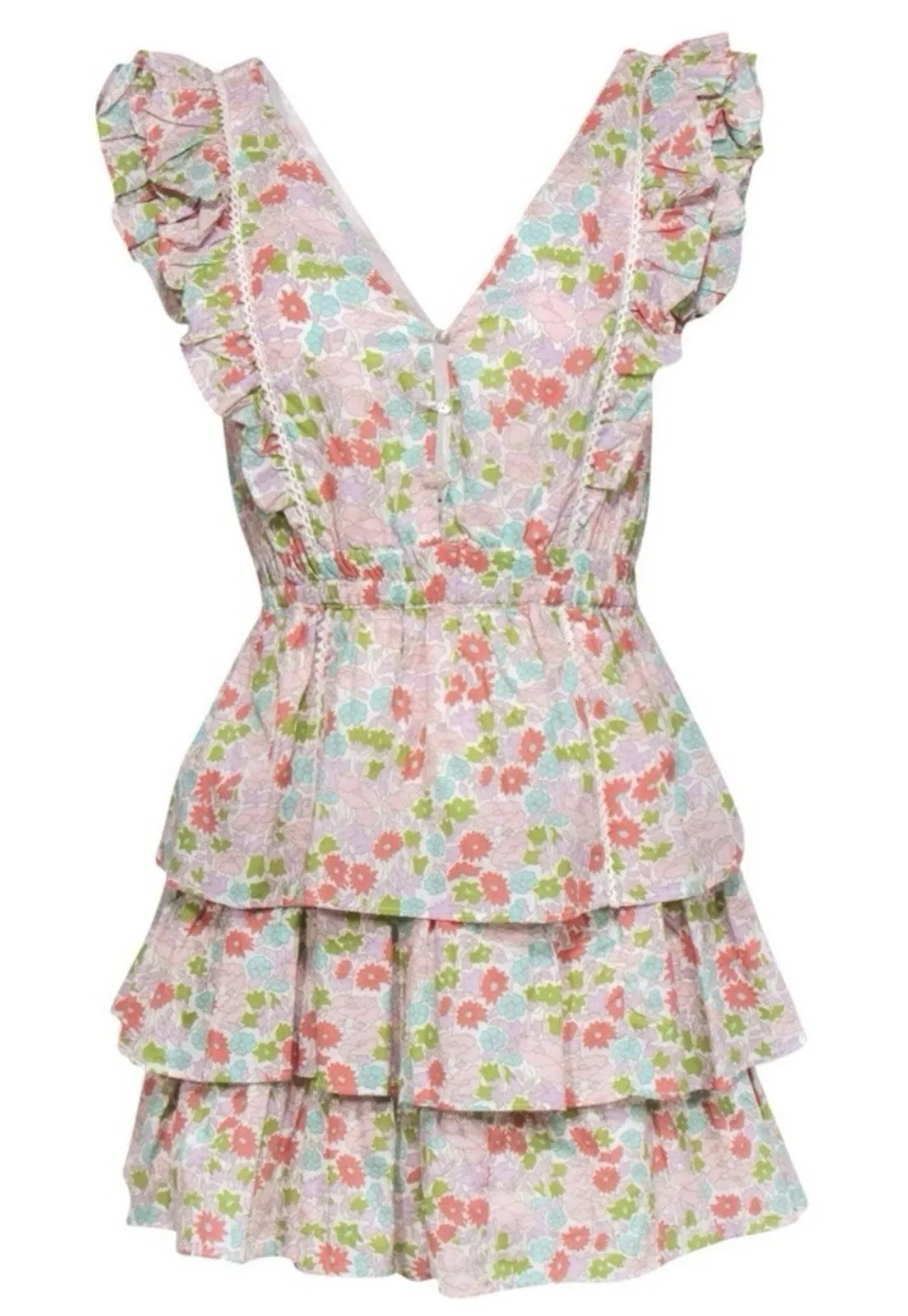 Show off your flower power with this '70s-inspired design! The Love The Label frilly, ruffled mini d... Show more