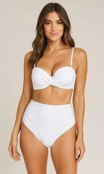 Aqua Eve Bikini Set Strapless High Waist White Size M Swimwear Retro Chic New with tag minimal swimwear, coastal chic, vacation ready, strapless bikini, retro swim, pinup vibes, beach aesthetic, clean girl look, cottagecore summer, influencer style, hot girl summer, pool party outfit, y2k swim, retro bikini, coquette beachwear, clean girl aesthetic, lulus vibes, white swim set, 90s revival, high waist bottoms, strapless top, beach babe, minimal aesthetic, swimcore *Disclaimer: The cover photo of this listing is AI generated. Please refer to photos of actual item for feature, color and pattern accuracy.