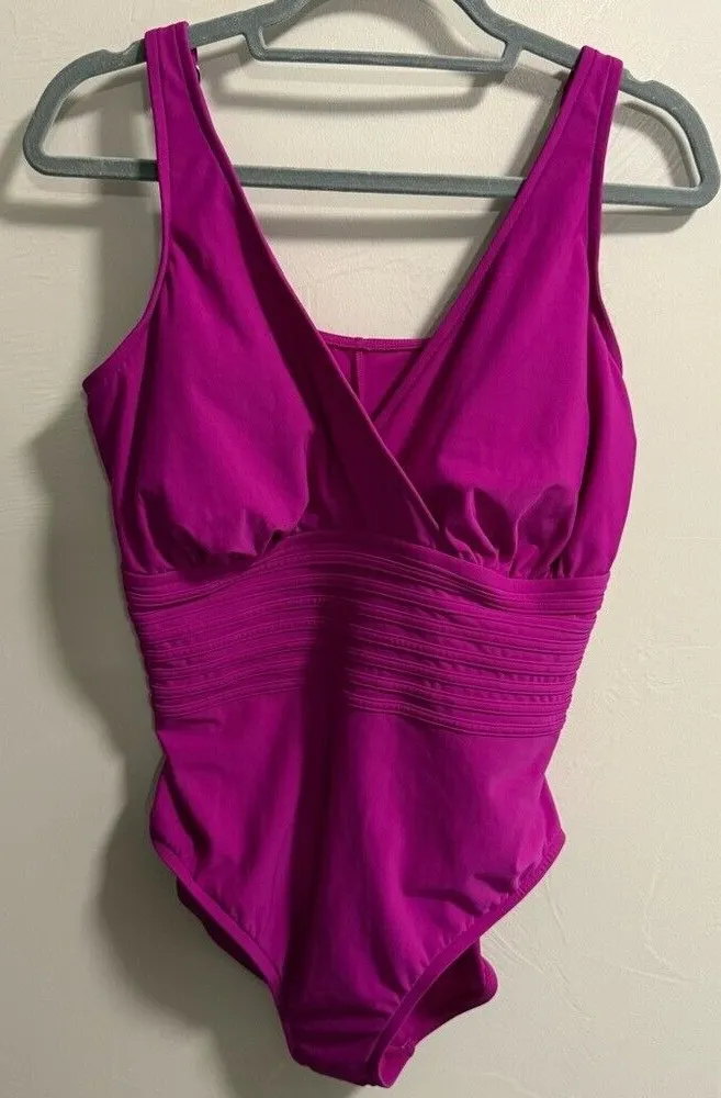 NWT Aqua Green Ruched Purple Magenta One Piece‎ Swimsuit V-Neck Slimming XL - $10 New With Tags - From Abbey