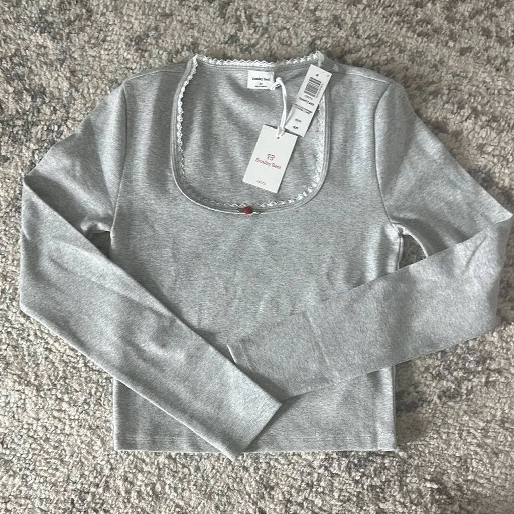 This is a squareneck longsleeve with lace trim and a rosette detail. It’s made with BestHug™ — super... Show more