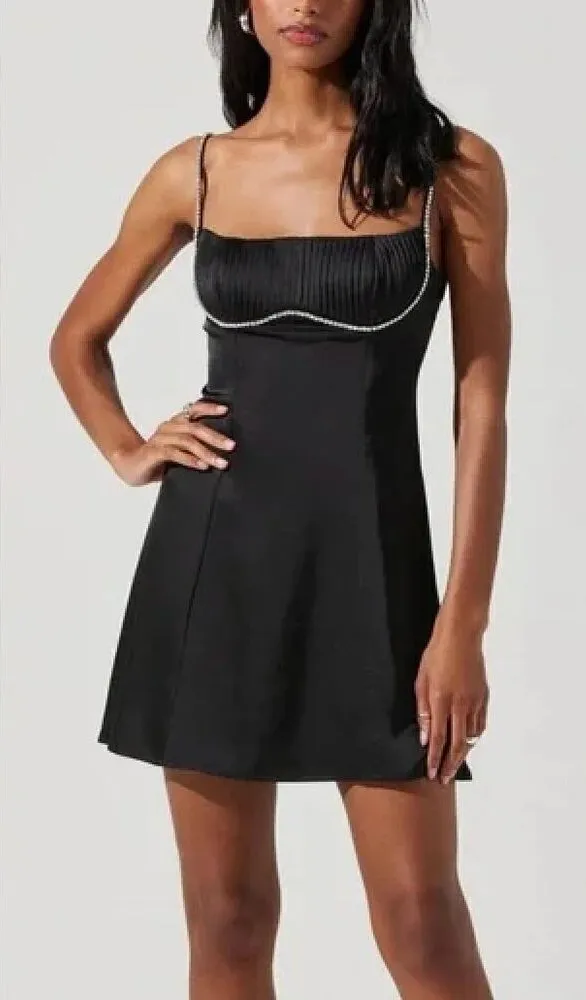 NEW WITH TAG ASTR The Label Mina Satin Rhinestone Trim Mini Dress in Black, Size Small Features: Sa... Show more