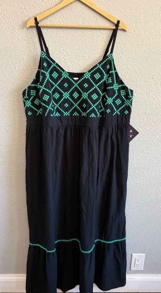 NWT Ava & Viv Tiered Maxi Dress Size 3X‎ Embroidered Detail Pockets Black - $28 New With Tags - From Karla