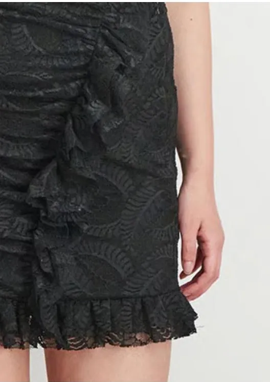 NWT - Avec Les Filles Black Lace Mini Skirt Size Medium Concealed Side Zipper Closure with Hook & Eye, Lined Measurements Laying Flat: 15" Waist 18" Length #bohochic #fairy #cottage #emo #twee