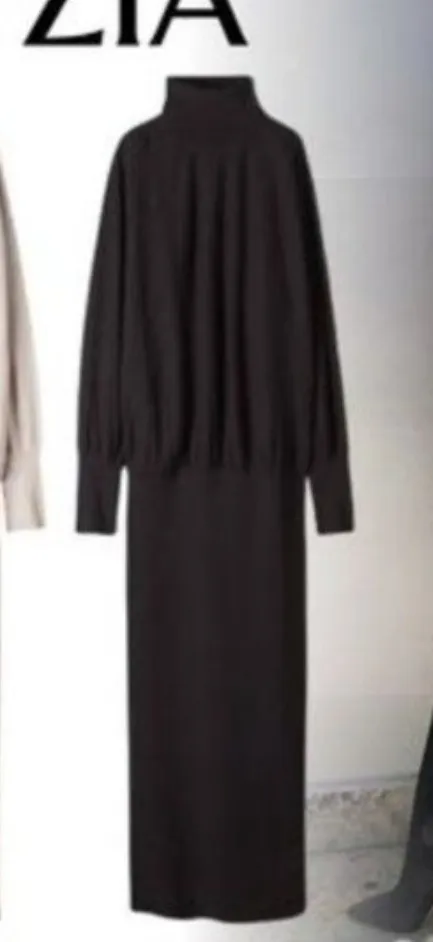 NWT Babaton Womens Bogart Turtleneck Knit Sweater Dress Size L Black Minimalist Approximately 22" p... Show more