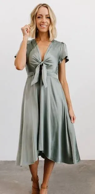 NWT Baltic Born Poppy Midi Dress Womens M Satin Eucalyptus Sage Green Tie Front Size M - $61 New With Tags - From Olga