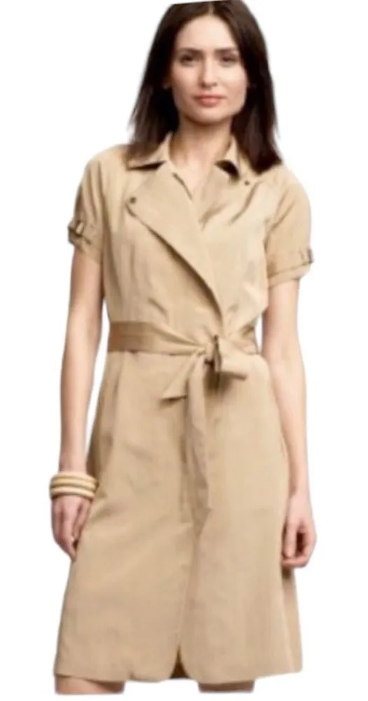 NWT Banana Republic Trench Shirt Dress Size 4 Khaki Belted Pockets Full Zip MSRP $150 Full zipper f... Show more