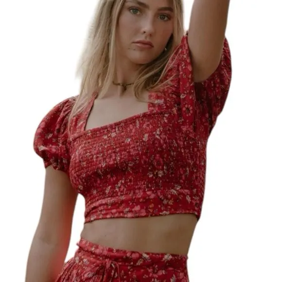 NWT Band Of The Free Joelle Crimson Floral Smocked Crop Top Women’s Size Large Red - $28 New With Tags - From Amanda
