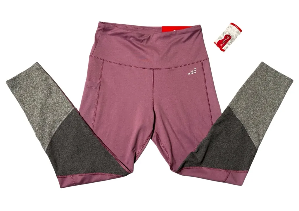 Comfortable BCG leggings with a stylish pink,purple,nude and gray design. High Rise 7/8 Legging Tight Fit Length Hits Just Above The Ankle Moisture-Wicking Technology Odor-Resistant Technology 4 Way Stretch Technology Has One Pocket On The Side New With Tags Size Medium Flaws: Does Have A Faint Mark On The Back Top Left Side Flaw Is Pointed Out With Scissors And Circled In Red. You Can Wash It And See If It Comes Off Once You Purchase. Offers Welcome On Item Measurements Laying Flat 13 inches waist 33 3/4 inches long 24 1/2 inches inseam