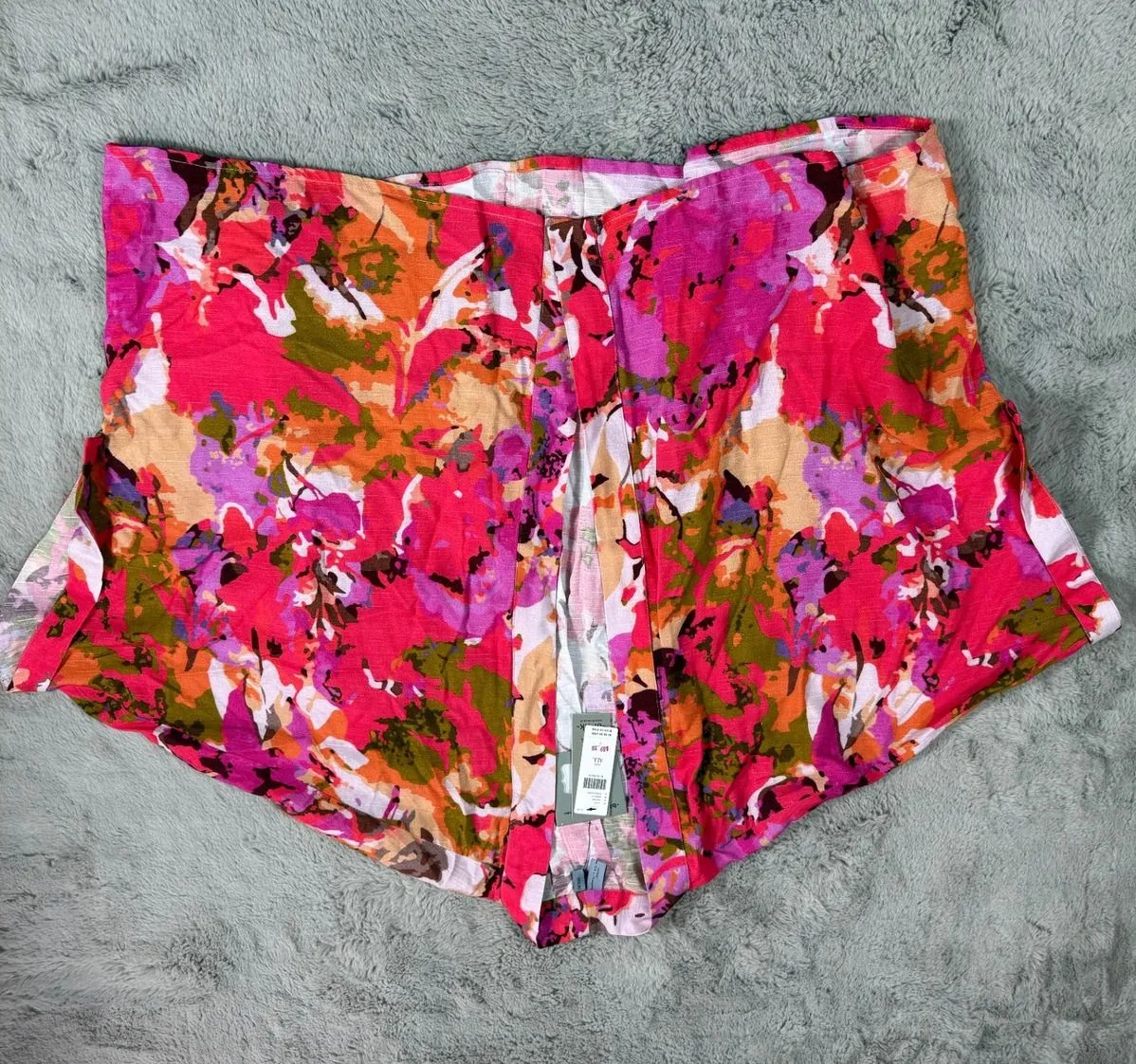 A vibrant and eye-catching Blank London kimono, perfect for adding a pop of color to any outfit. This open-front shrug features a beautiful floral print in shades of pink, purple, orange, and green. Designed with short, cuffed sleeves and a relaxed, flowing fit, this piece is both comfortable and stylish. The soft, lightweight fabric drapes elegantly, making it ideal as a cover-up or layering piece. Comes with tags and spare sequins/beads/buttons in an envelope. Perfect for a casual brunch, a beach vacation, or a summer evening stroll. Measurements: • Width: 32 inches • Length: 29 inches Color: Multicolor Department: Women Style: Kimono Material: Viscose Sleeve Length: Short Sleeve Sleeve Type: Kimono Sleeve Accents: Button Pattern: Floral Features: Lightweight, Open Front, Cuffed Sleeves, Relaxed Fit, Draped Fit: Relaxed Keywords: kimono, shrug, cover up, floral, print, open front, one size, colorful, bohemian, beach, resort wear, duster, cardigan, lightweight, viscose
