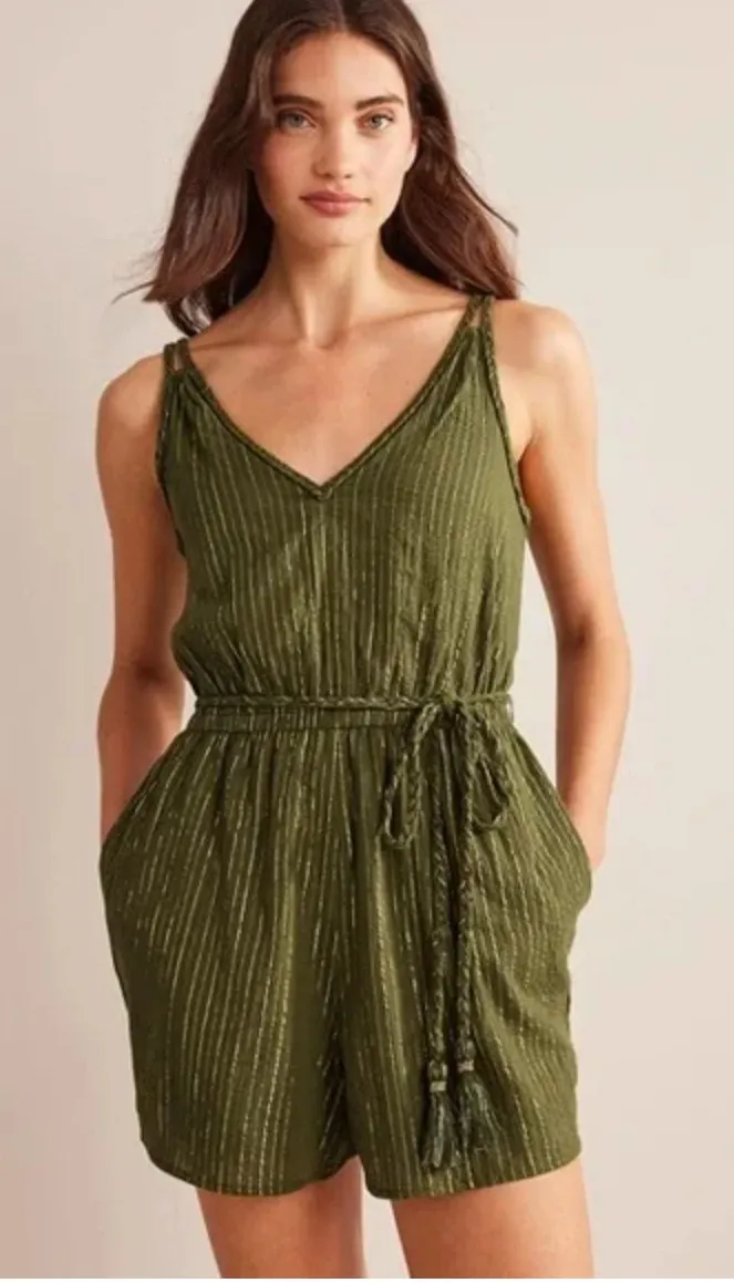 NWT Boden Grecian Playsuit Romper Green Metallic Gold Striped Pockets D0674 12 - $52 New With Tags - From Amanda