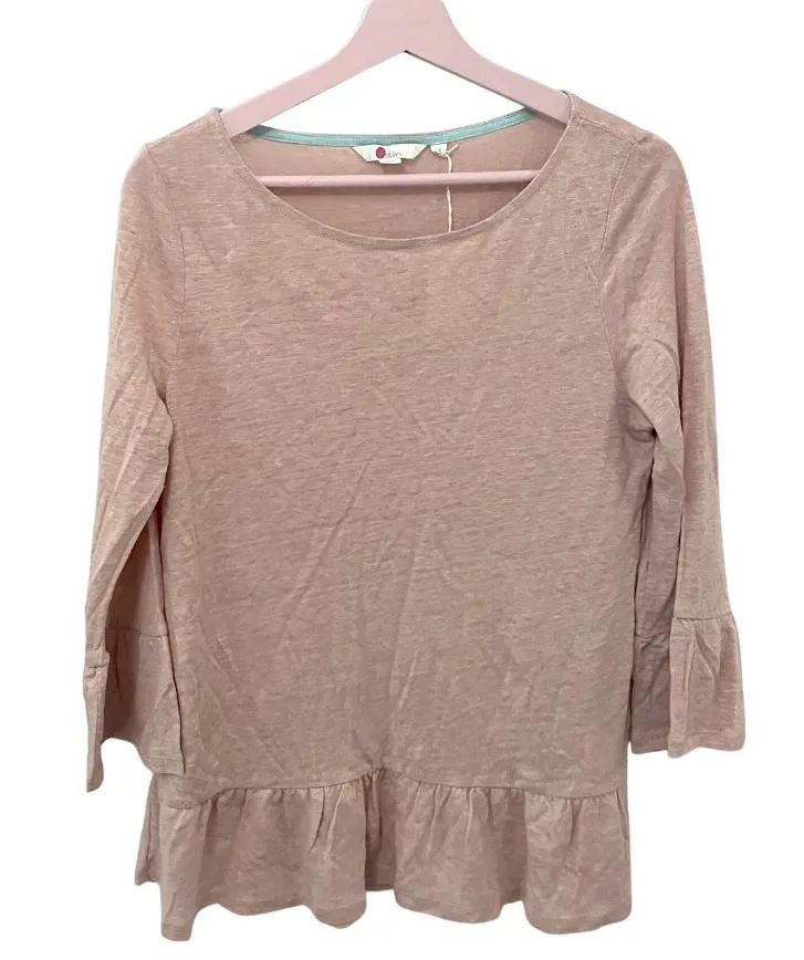 This is a NWT Boden Light Pink Linen Flare Peplum Jersey 3/4 Sleeve Top Size S J0201. In excellent c... Show more