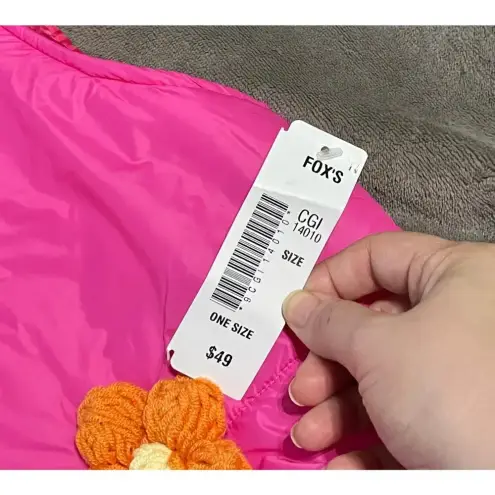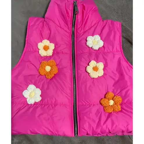 NWT Bright Pink Vest Puffer Cropped Croquet Knit Flowers Zip One Size Preppy Feminine Women Teen N... Show more