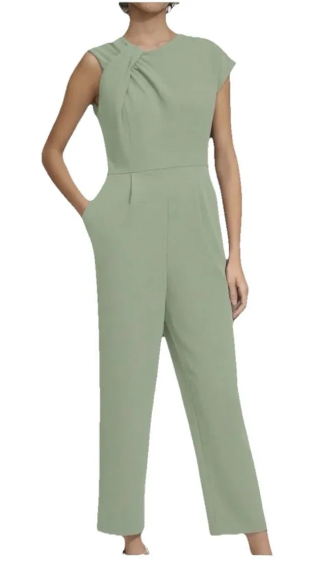 Looped fabric and asymmetric sleeves give this jumpsuit from Calvin Klein a unique twist. A great al... Show more
