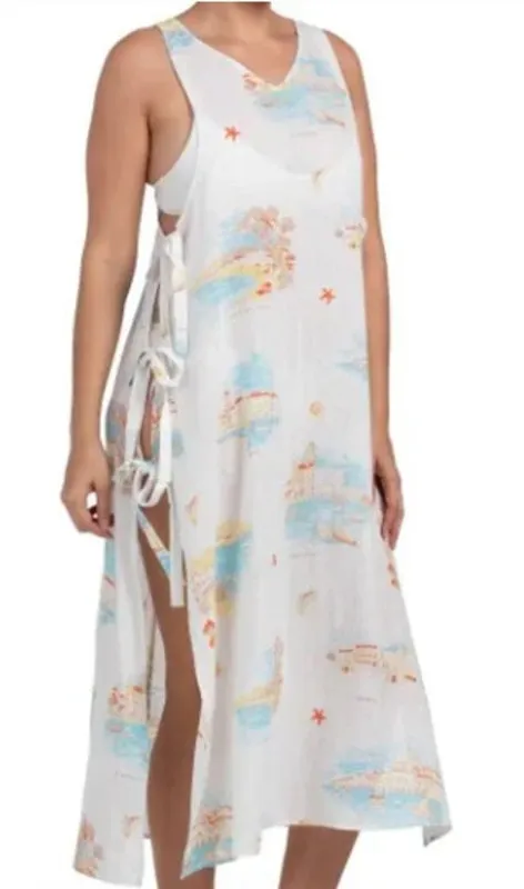 NWT Calypso St. Barth Poolside Resort Beach Cover Up Midi Dress Vintage Coast Print XL Size X-Large XL New with tags. No flaws. Cover up dress French destination allover print Midi length V-neck Sleeveless Cut out back Side tie details Mother of pearl buttons 55% linen, 45% viscose Machine wash RETAIL $350 Tags: lightweight, breathable, open, coverup, vacation, St. Tropez, Menton, S' Raphael, Monaco, Nice, Juan Les Pins, France, European Bust: 24.5" Length: 52" Not sure if it will fit? Measure 1 or 2 of your favorite clothing items and compare. Measurements are approximate flat-lay.