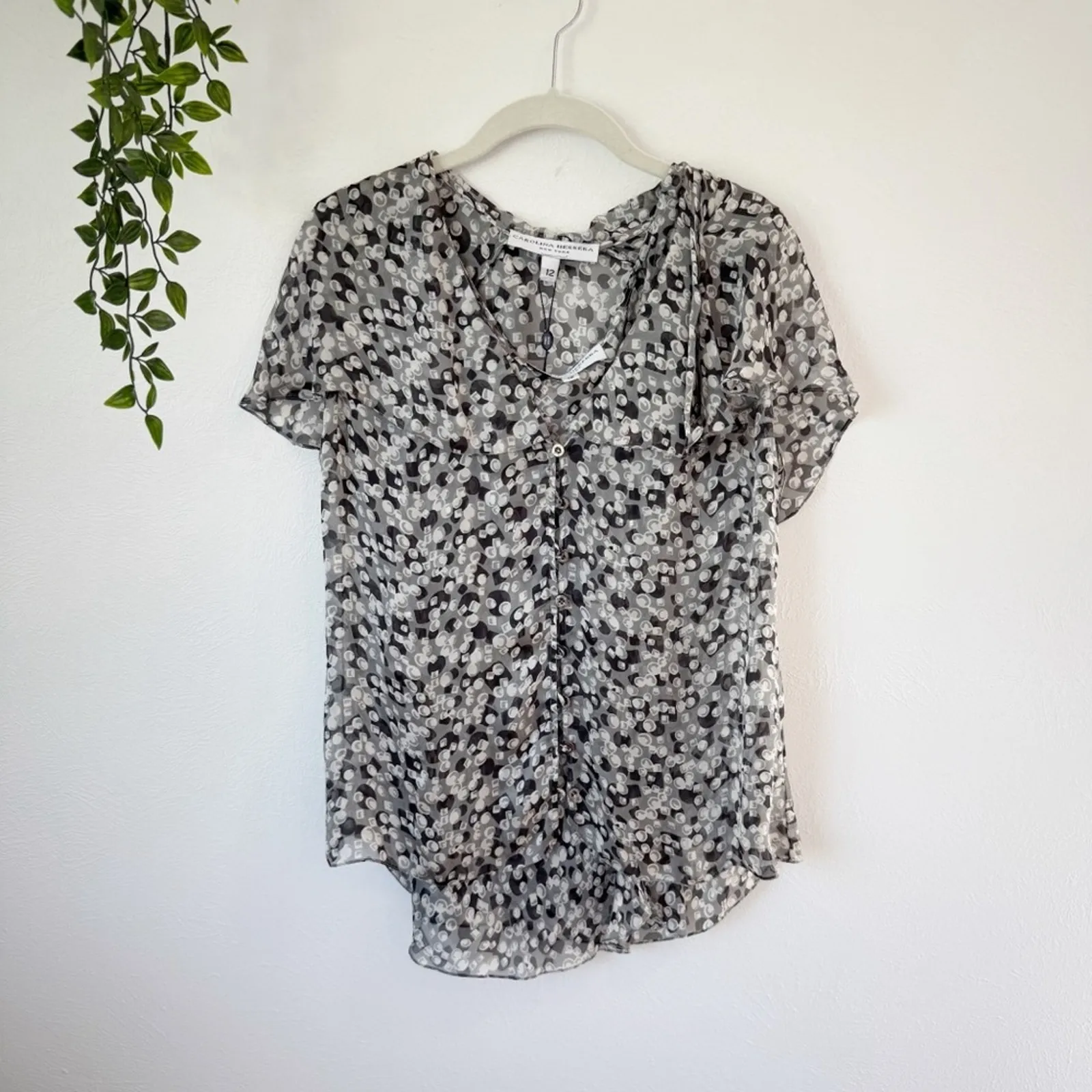 New with tags Carolina Herrera Silk Print Tank & Blouse Sz 12 100% silk Never been worn Abstract black polka dot pattern Two piece Tank top with flutter sleeve button down blouse overlay Dry clean only