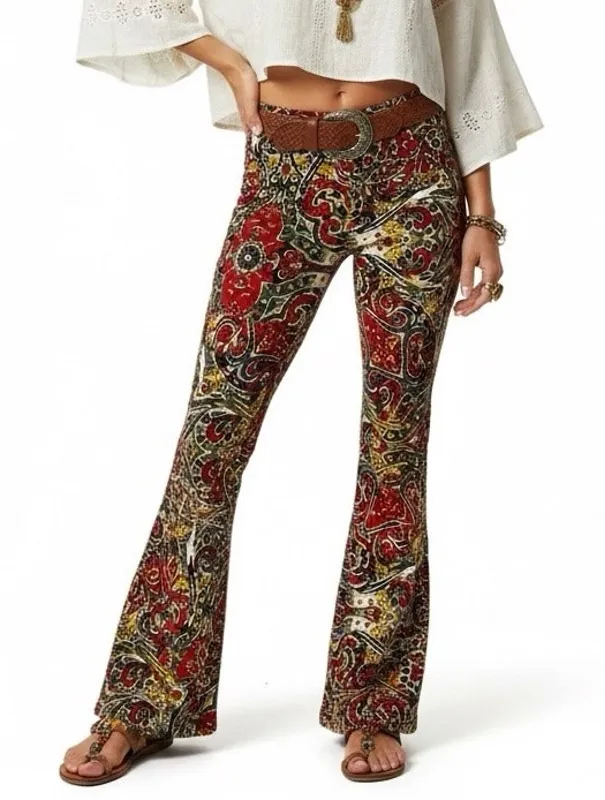 Paisley print Flare leg Pull-on style Mid rise Soft stretch knit Full length Approx. Measurements:... Show more