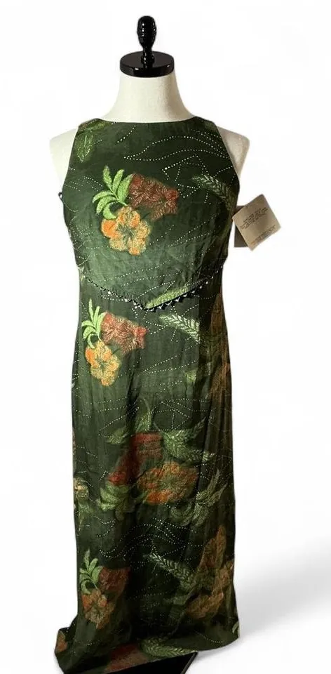 NWT CDC Green Floral Beaded Maxi Dress Sleeveless Evening Party Gown Envision an unforgettable even... Show more