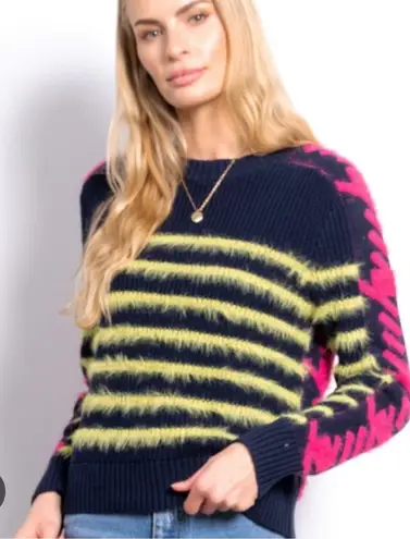 NWT Central Park West‎ NY Navy Neon Pink Yellow Stripe Houndstooth Womens S Blue - $95 New With Tags - From Jamie