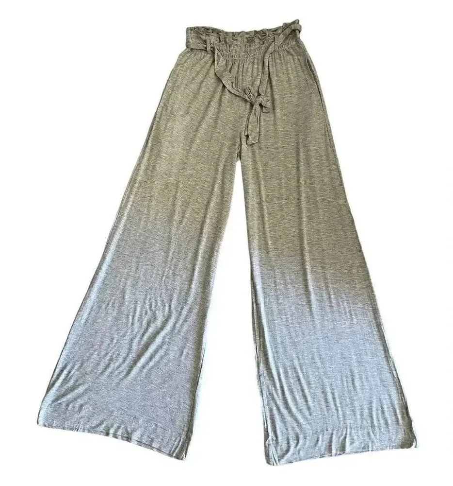 NWT Chaser Paper Bag Waist Jersey Soft Wide Leg Heather Gray Loungewear High Rise Drawstring Closur... Show more