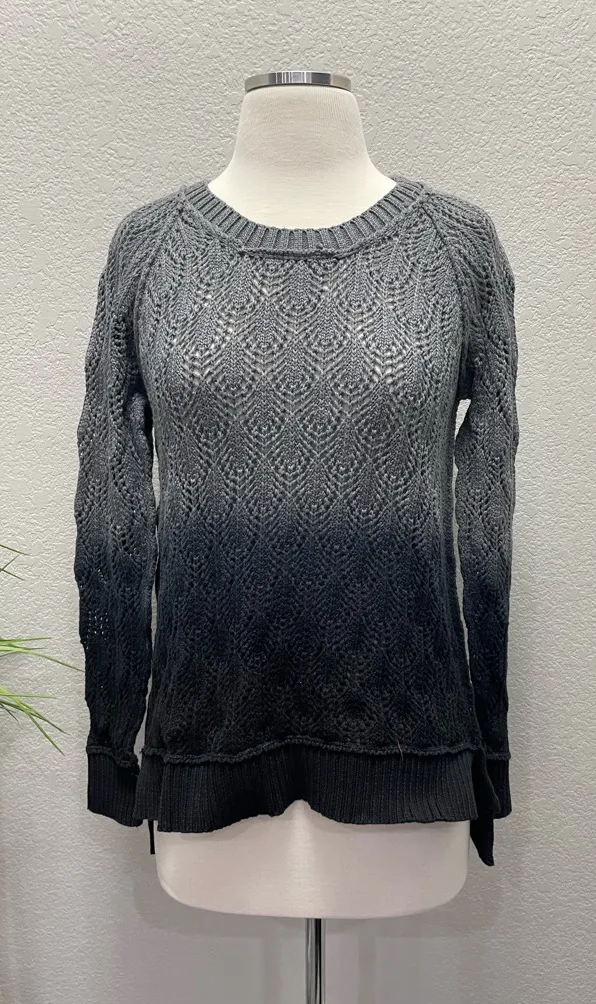 Chaser long sleeve hi-low Raglan Pullover Juniper knit sweater. Gray and black ombré. Size Small. M... Show more