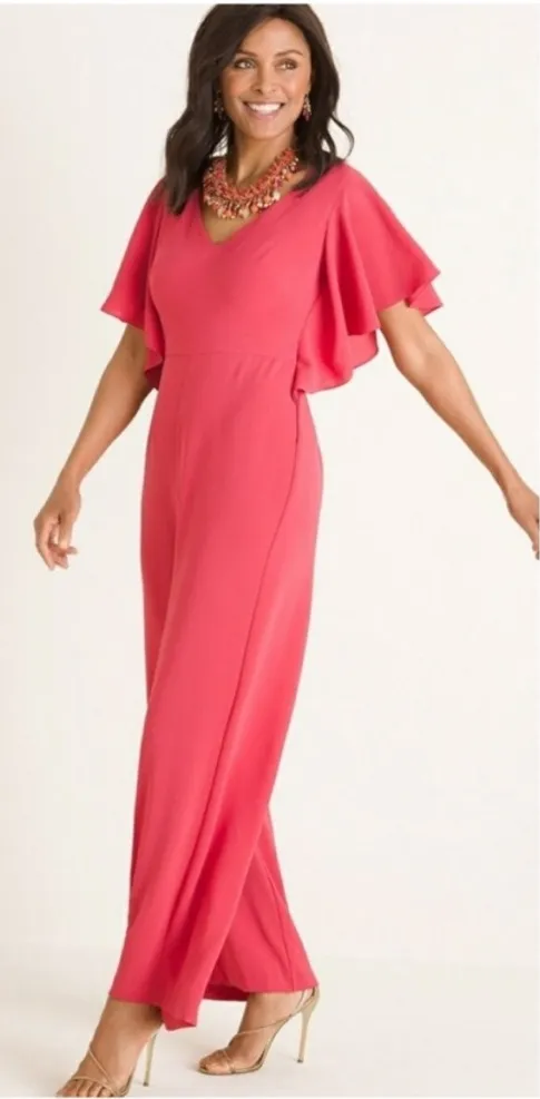 Chicos Ruffle Sleeve Jumpsuit Pant Suit, Chico's Size 1/US8. The formality of a dress, with the chic... Show more