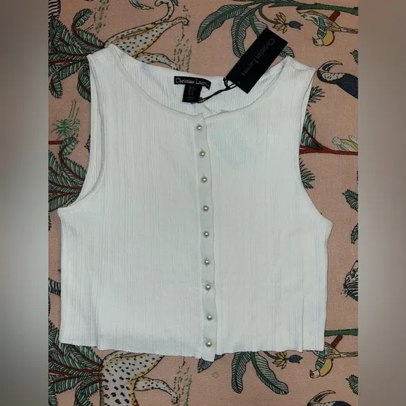 NWT Christian Lacroix White Medium Pearl Button Top Tank Top Womens Ribbed Shirt - $44 - From peachy