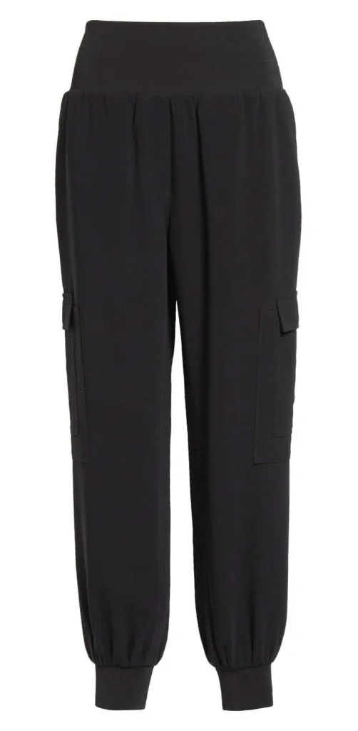 Up for purchase today is... Designer: Cinq a sept Size: L Fit: Please do not go by size number but rather check measurements listed below to determine if the item will fit. Color: Black Style/Design #: ZP178304Z Material: 100% cupro / Combo 75% viscose, 18% polyester, 7% spandex Details: * A soft, luminous sheen elevates cargo-style joggers made from comfortable cupro with chic off-duty style in mind. Wide, ribbed waistband. Slant hand pockets. Flap cargo pockets. Pull-on. Ribbed hems. Unlined. Dry clean. Imported. * Condition: New with tags Retail: $265 Measurements: Waist - 29" t0 38" Rise - 12 ¼" Hips - 47" Thigh - 25 ½" Knee - 20 ½" Inseam - 27" Hem - 9"