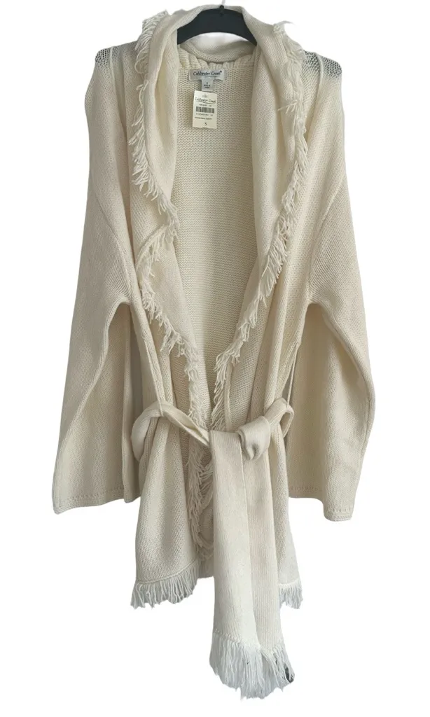 Coldwater Creek Elegant Cream Open Front Shawl Soft Knit Sweater with Fringe Detail New with Tags Si... Show more
