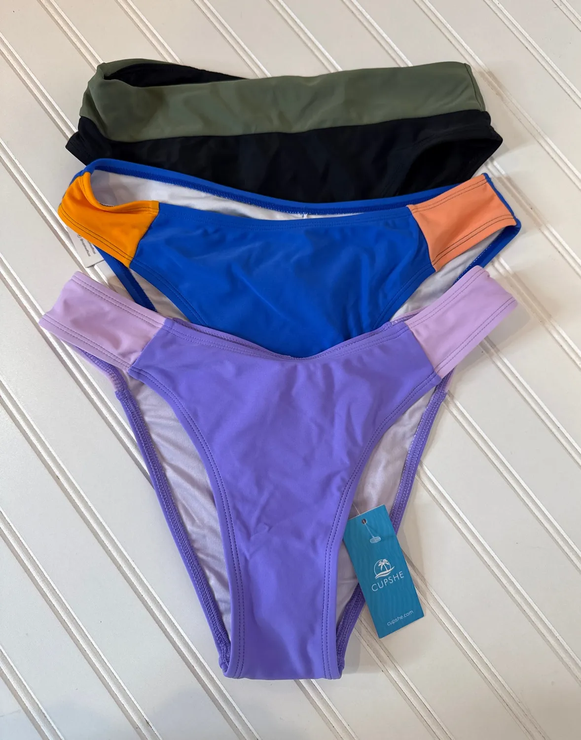 LOT Of 2 Bikini Bottoms; 1 Cupshe Mid-Rise Bikini Bottoms 1 Cupshe Super Bloom Colorblock V-Waist B... Show more