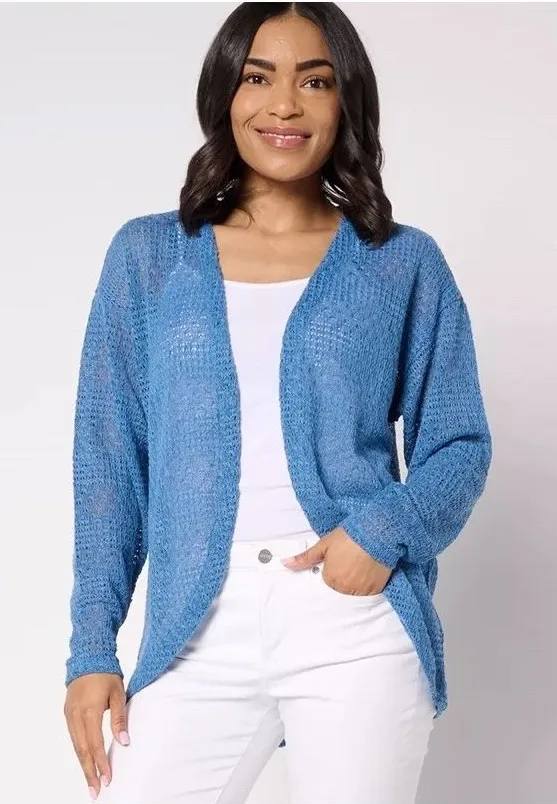 Fabrication: knit Features: fauxchet batwing design, open front, long sleeves, drop shoulder Fit:... Show more