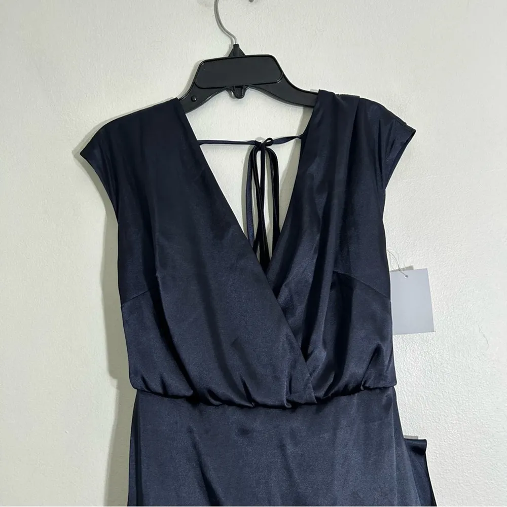 Size 0 Measurements (approximate,) taken flat: Bust (from pit to pit:) 16” Waist: 12” Length: 59.5” “Full length stretch charmeuse cap sleeve dress with v-neck surplice blouson bodice. Optional bowed sash. A-line skirt. back zipper” This is in new condition. Items shipped same or next day. Weekend orders shipped Monday. Wedding prom bridesmaid homecoming formal