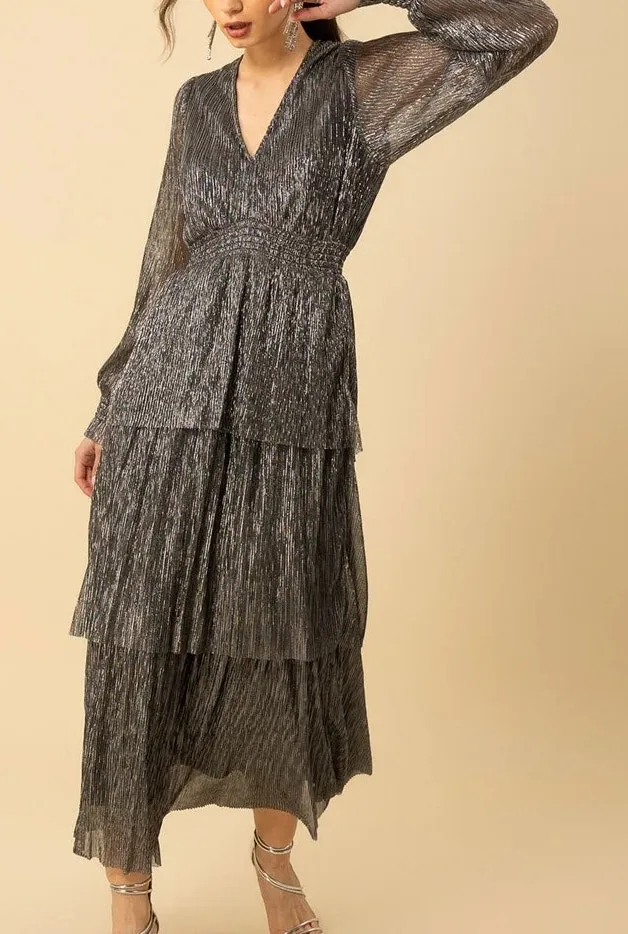 NWT Dress Forum | S | Dress Misi Metallic Layered Ruffle Glitter V Neck Holiday Gold - $52 New With Tags - From Sourced In SoCa