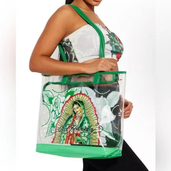 NWT Ed Hardy Virgin de Guadalupe Clear Floral Tote Bag $159 Green - $89 New With Tags - From Amanda