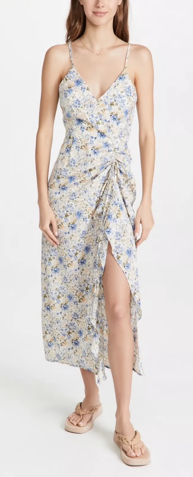 Brand new with tags (see pics for details) Flaws: Has pulling on side seam. En Saison floral midi dress with a flattering v-neckline and delicate spaghetti straps. This charming dress features a playful ruffle accent along the side, adding a touch of feminine flair. Perfect for a garden party, brunch, or a romantic evening out. Style: Slip Dress, Sundress, Midi Dress Length: Asymmetric Department: Women Sleeve Length: Sleeveless Pattern: Floral Occasion: Casual, Party/Cocktail Fabric Type: Woven Theme: Bohemian Neckline: V-Neck Season: Summer, Spring Sleeve Type: Strappy Sleeve Closure: Zip Accents: Ruffle Features: Asymmetric, Lined Keywords: En Saison, midi dress, floral print, ruffle detail, spaghetti strap, v neck, summer dress, bohemian, feminine, lightweight, garden party, brunch, resort wear, Floral Midi Dress, En Saison Dress, Ruffle Midi Dress, Cottagecore Dress, Garden Party Dress, Spring Wedding Guest, Boho Chic, Lightweight Summer Dress, Romantic Floral, Spaghetti Strap Dress, Hidden Zipper, En Saison NWT, Festival Fashion, Elegant Spring Dress Measurements: included in photos. Approx Length: 52". Please compare the measurements to something you already own for a great fit! Fast shipping: Shipped out next business day! Please let us know if you have any questions!