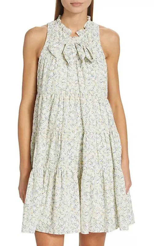 Size Medium M New with tags. No flaws. Mini, above knee length Boxy shift silhouette Tiered design Delicate floral print Embroidered flowers Self-tie neck Sleeveless Pulls on Lining: 100% cotton RETAIL $170 Bust: 19" Length: 36" Not sure if it will fit? Measure 1 or 2 of your favorite clothing items and compare. Measurements are approximate flat-lay. Love the item but not the price? Make an offer!