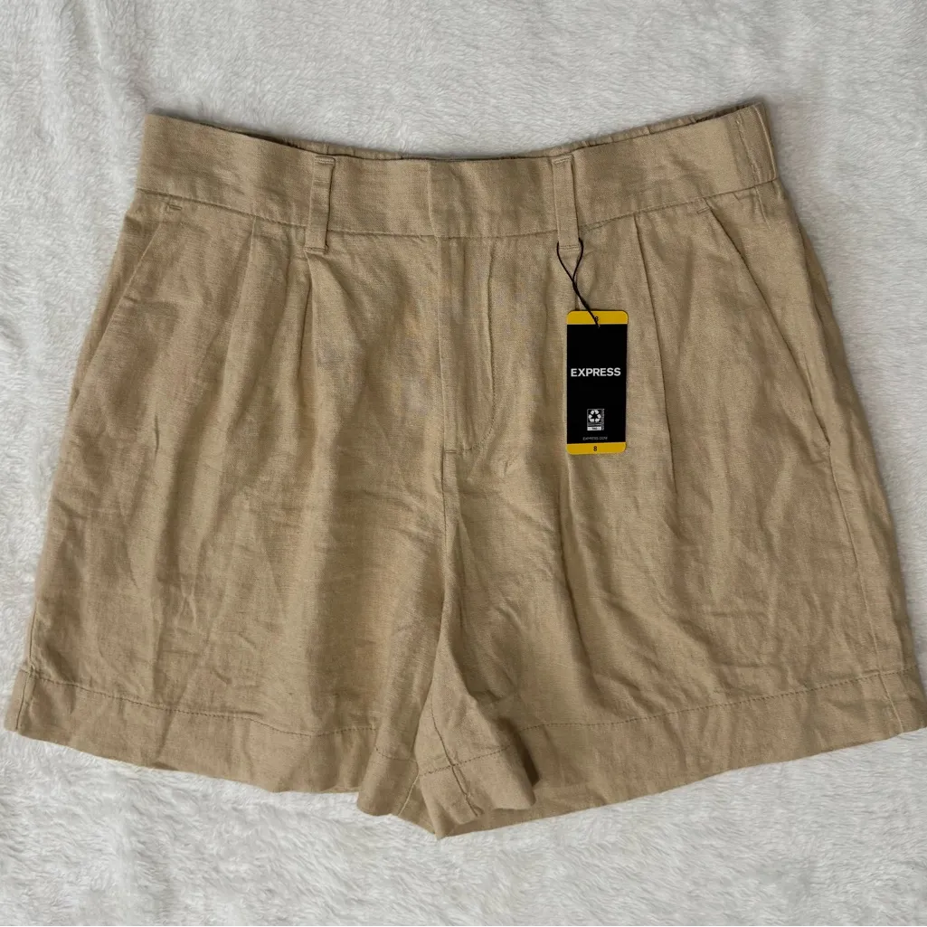 Elevate your wardrobe with these chic Express Stylist Linen-Blend Pleated Shorts. Perfect for busine... Show more
