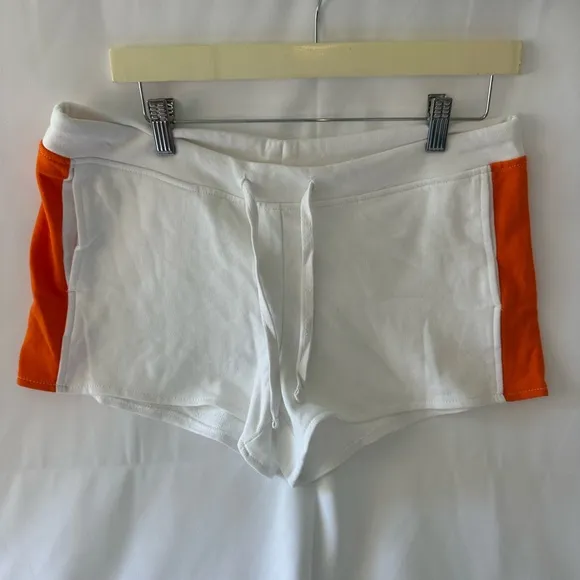 NWT Fabletics Women's Naaru White/Orange Terry Cotton Dolphin Hem Shorts Size M White Size M - $18 New With Tags - From Tammy