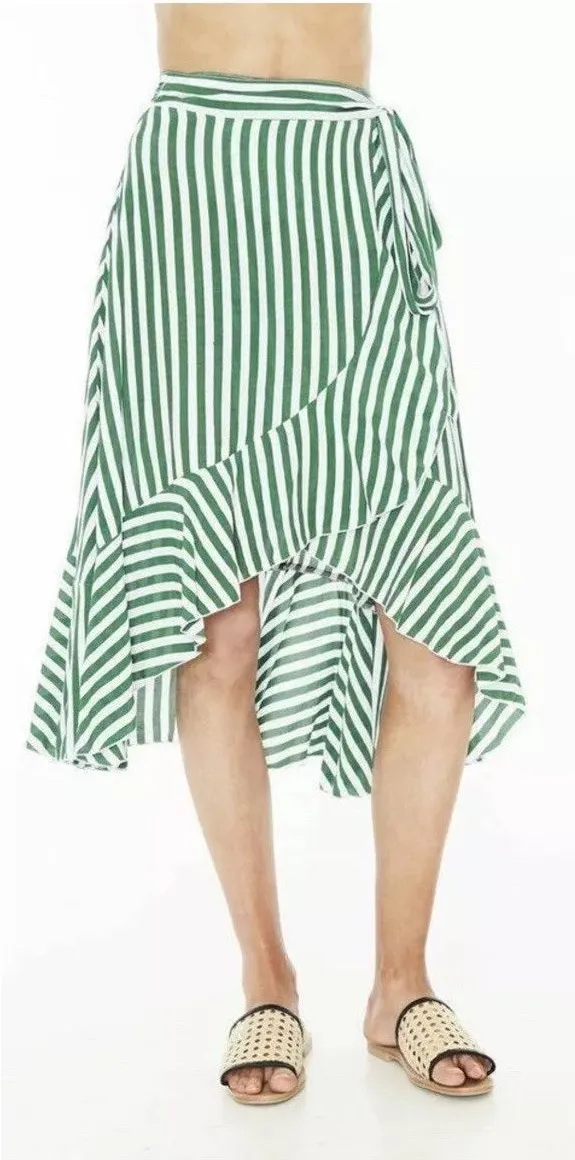 Add a touch of bohemian elegance to your wardrobe with this stunning FAITHFULL THE BRAND Tramonti Skirt. The ruffled wrap design and lightweight chiffon fabric make it perfect for any occasion, whether it's a casual day out, a party or even a festival. The green and white striped pattern adds a playful and fresh touch, while the mid-rise and short length give it a modern and chic silhouette. Crafted from high-quality rayon and made in Indonesia, this skirt is both comfortable and durable. It also features a tie closure and a variety of accents such as free character and floral theme. The skirt is available in US size 4 and is suitable for all seasons. Don't miss out on this gorgeous piece and add it to your collection now! Smoke free and pet friendly home. With shipping from the great state of PA, you can expect your product to arrive in no time! Thanks for shopping by!